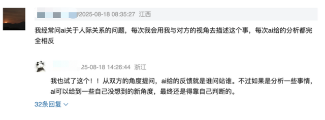 同一个 AI 可能会对一方说:“你需要警惕这段关系中的情感操纵”,转而告诉被指认的操纵者“你只是在维护合理的个人边界”。