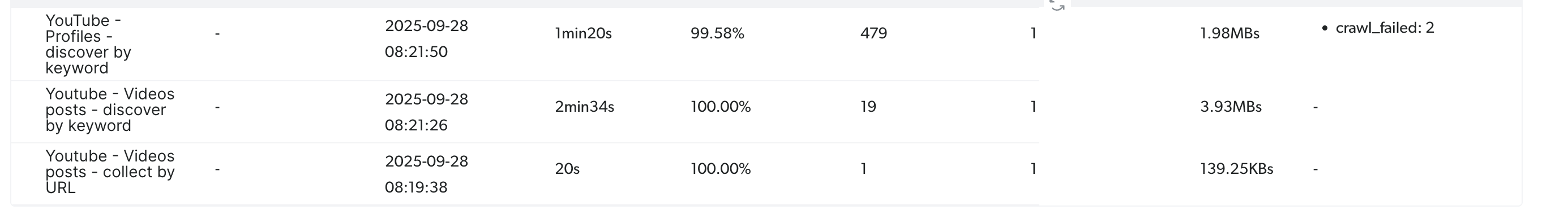 接下来我将通过 URL 收集 YouTube 帖子、通过关键词搜索新的 YouTube 视频、通过频道 URL 发现视频、通过 URL 收集用户资料。