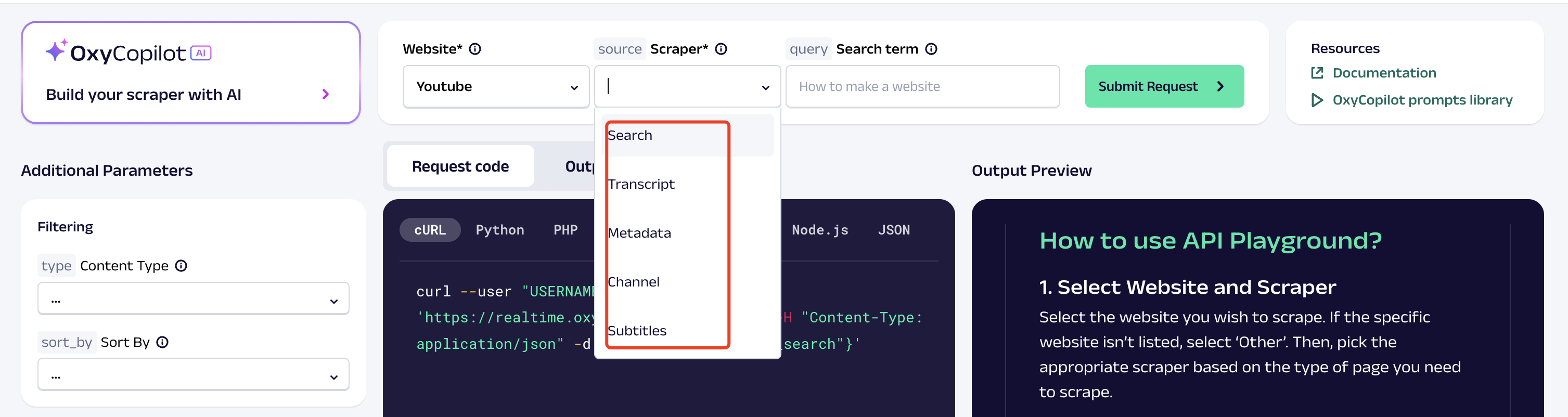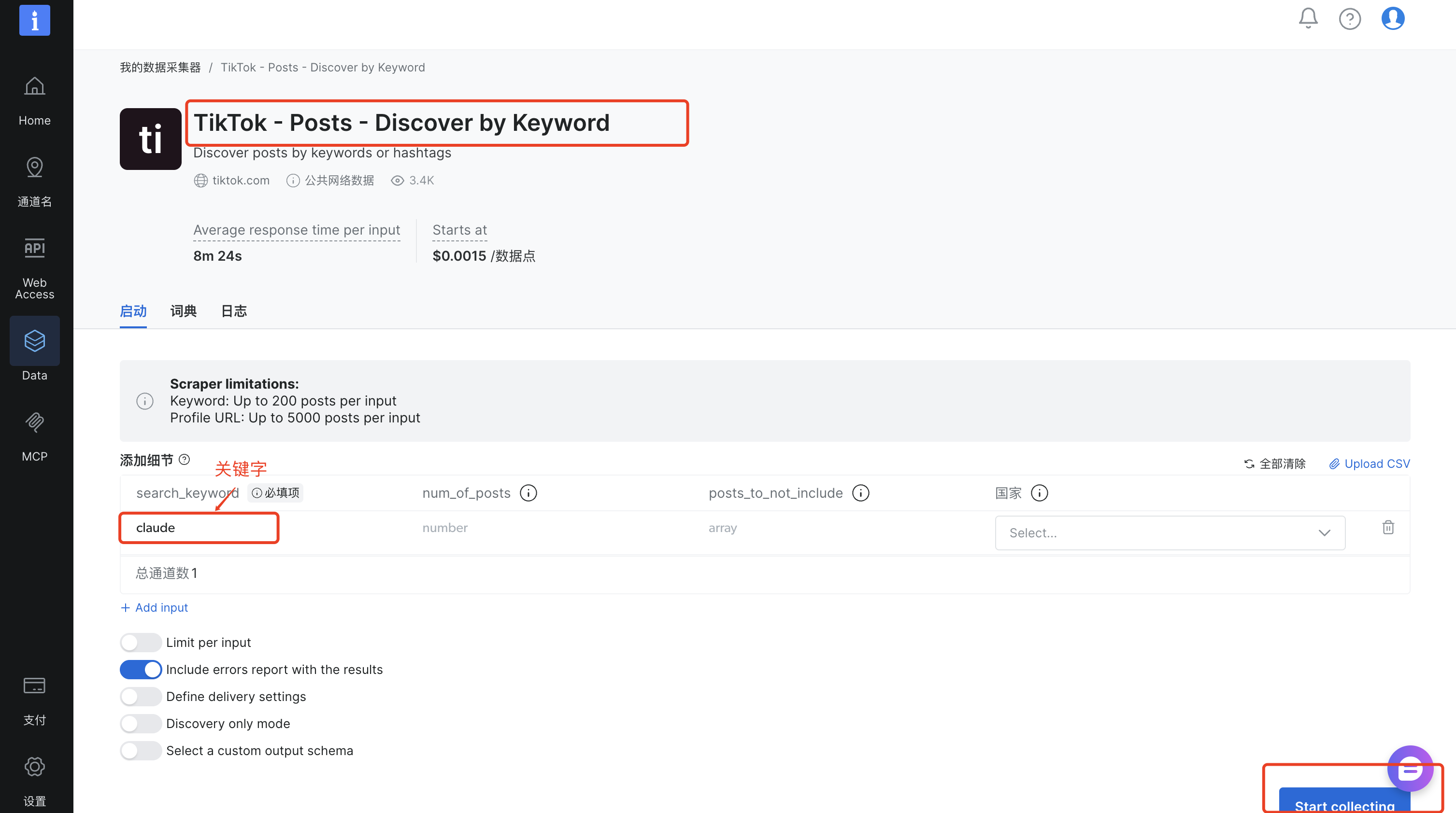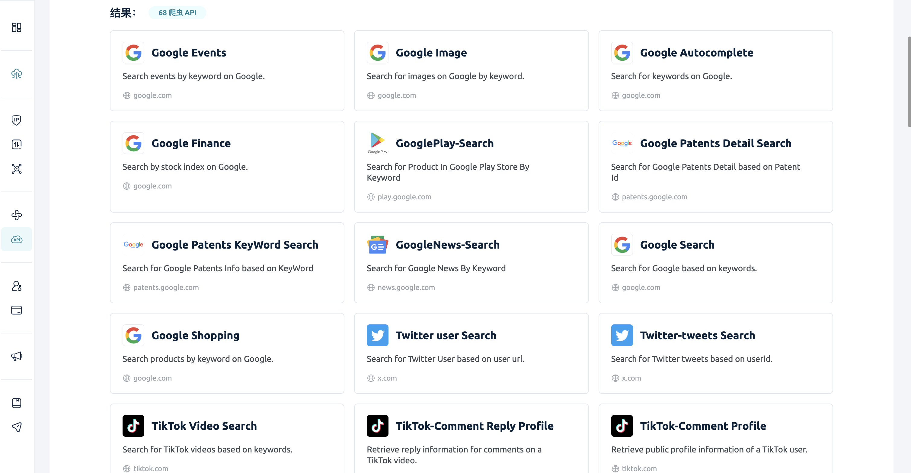 其中对 YouTuBe 提供了 8 个抓取器、TikTok 提供了 15 个抓取器。