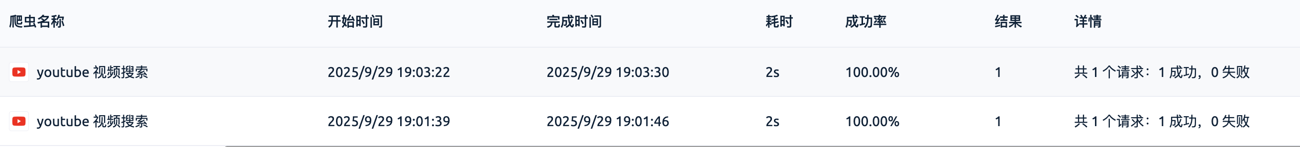 我爬取了两次,可以看到爬取结果,大概经过了 5-10S,爬取到只有 20 条记录