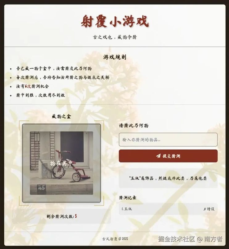 文心快码 3.5S 开发古风射覆小游戏,它帅到我了!