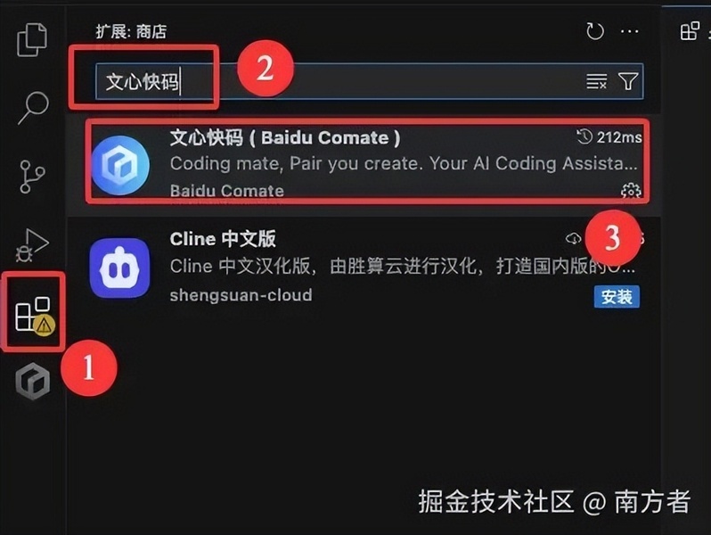 打开,开搞!点击扩展(商店),搜索“文心快码”,安装它!