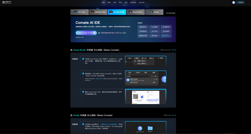 也支持独立 IDE,Comate 官网可一键下载:https://comate.baidu.com/zh/download