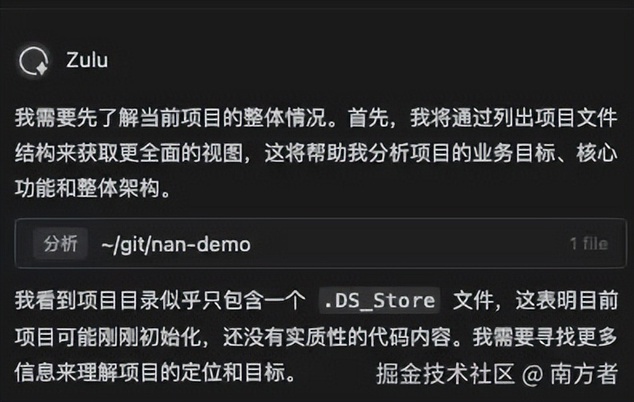 一会后,描述完,它开始干活了!首先它先分析你目录有没有描述(联系寻找内容的上下文关联)的情况。