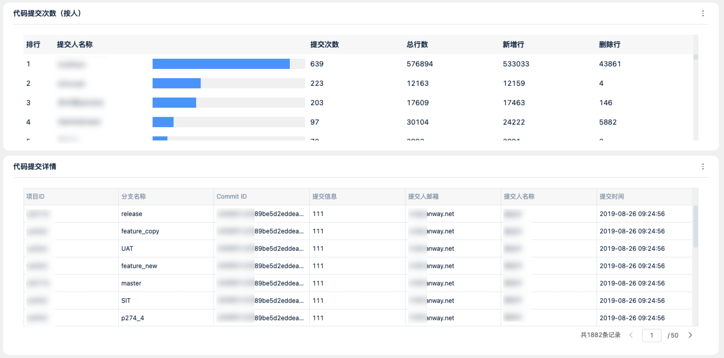 分析人员代码提交情况与代码质量,并度量代码检查问题的趋势、数量及严重程度。