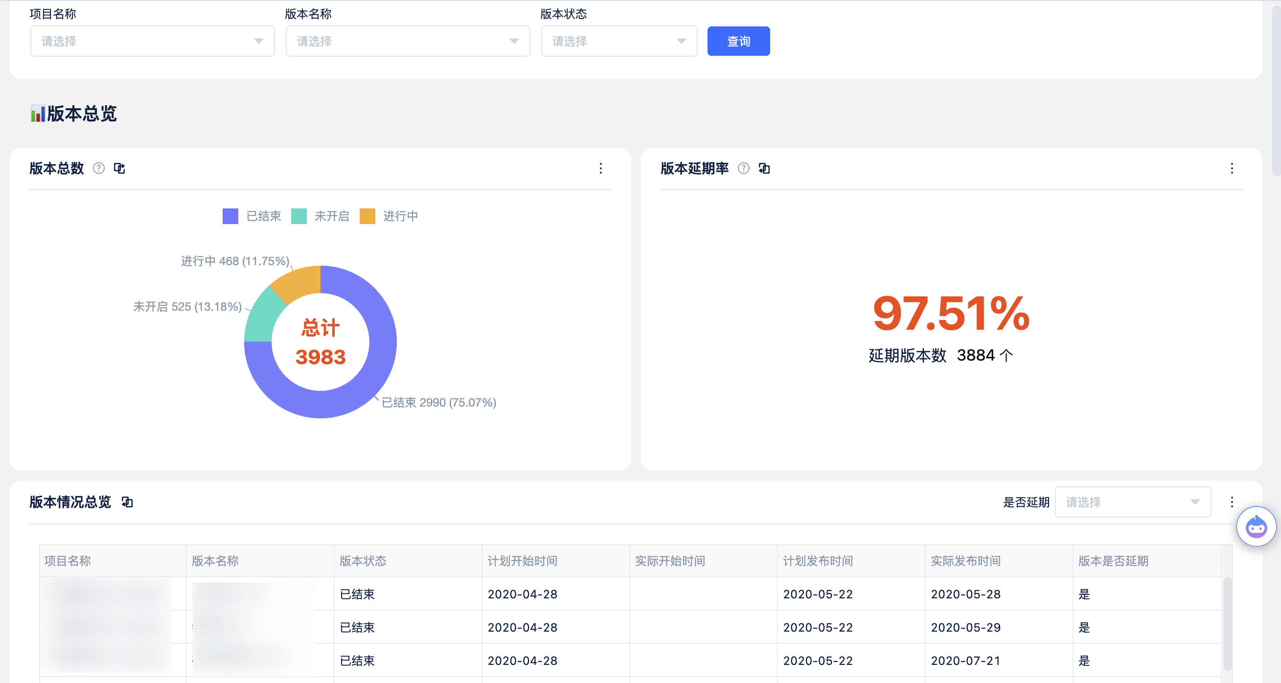 用于跟踪项目版本迭代,保障版本发布质量与流程规范。
