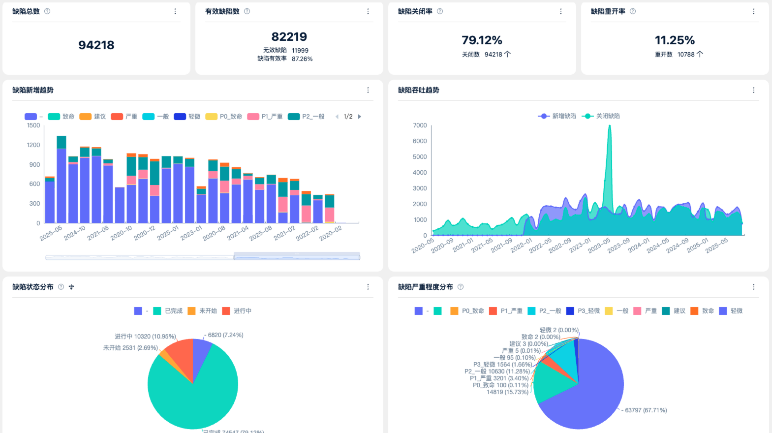 跟踪测试执行、缺陷管理、用例质量、线上逃逸等数据,保障业务需求高质量交付。