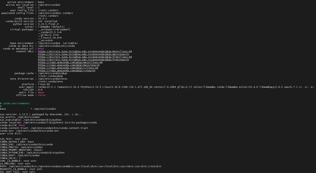 解决: 参照第四部分,使用绝对路径的 source /path/to/miniconda/bin/activate 方式来激活,不要依赖系统自带的 conda 命令别名。