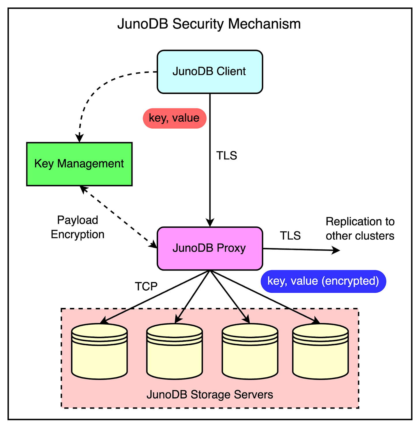 作为全球支付处理商的核心组件,安全性是 JunoDB 最重要的设计原则,它提供端到端数据保护: