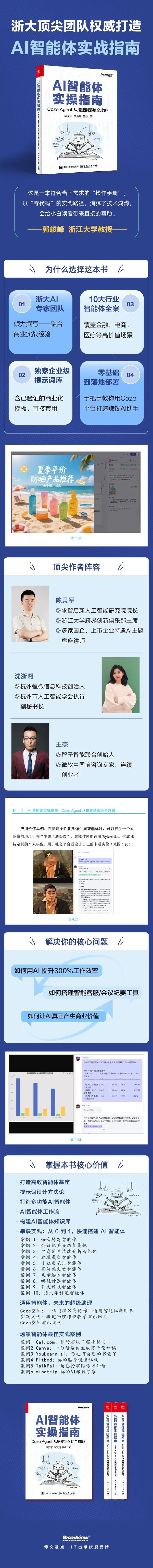 作者团队既有求智启新人工智能研究院院长、杭州人工智能学会核心成员,也有微软前咨询专家,实战经验覆盖国企、上市企业 AI 赋能,更有帮传统企业用智能体提升客服效率 300% 的真实案例。他们把复杂的技术逻辑拆解成“零代码”步骤,哪怕是纯小白,也能跟着做出能落地的 AI 智能体。