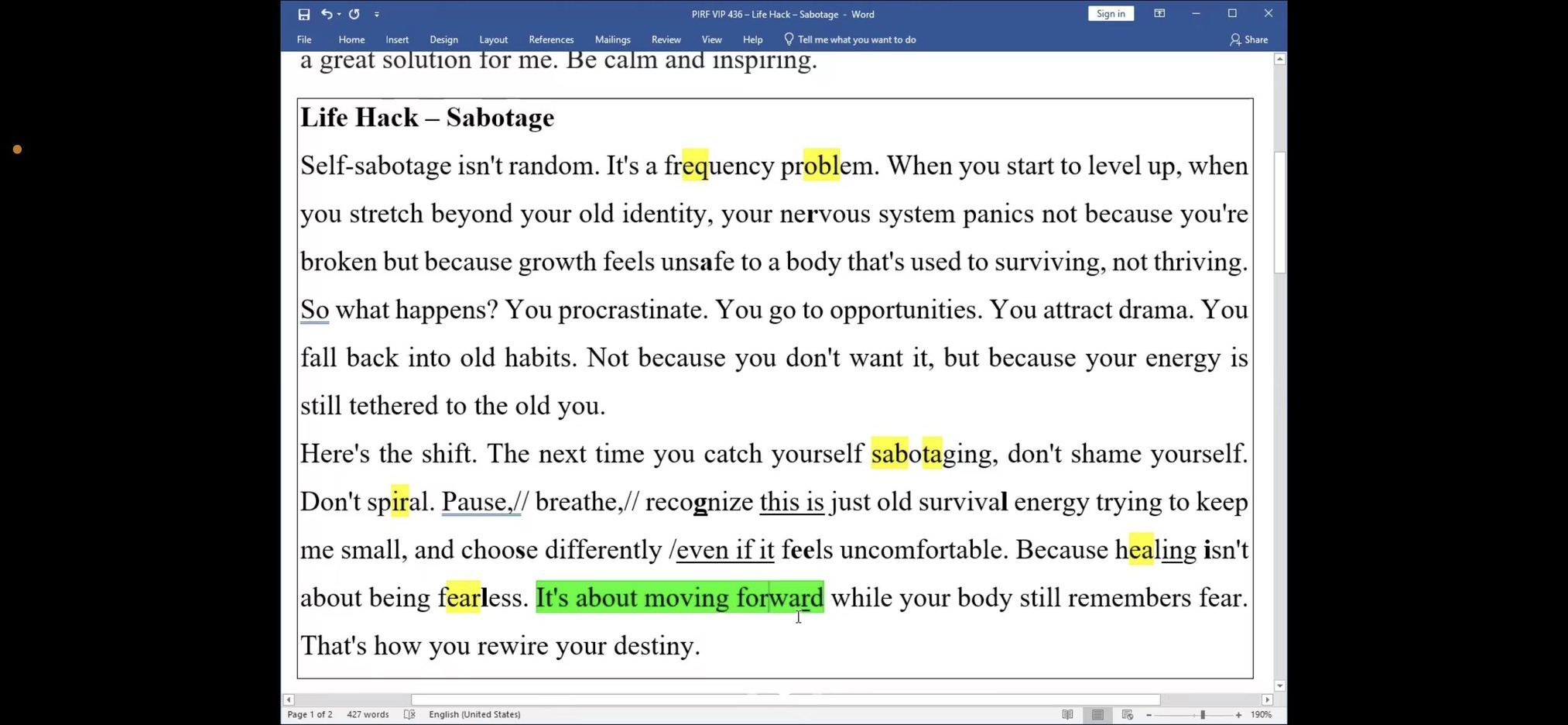 Self-sabotage isn't random. It's a frequency problem. When you start to level up, when