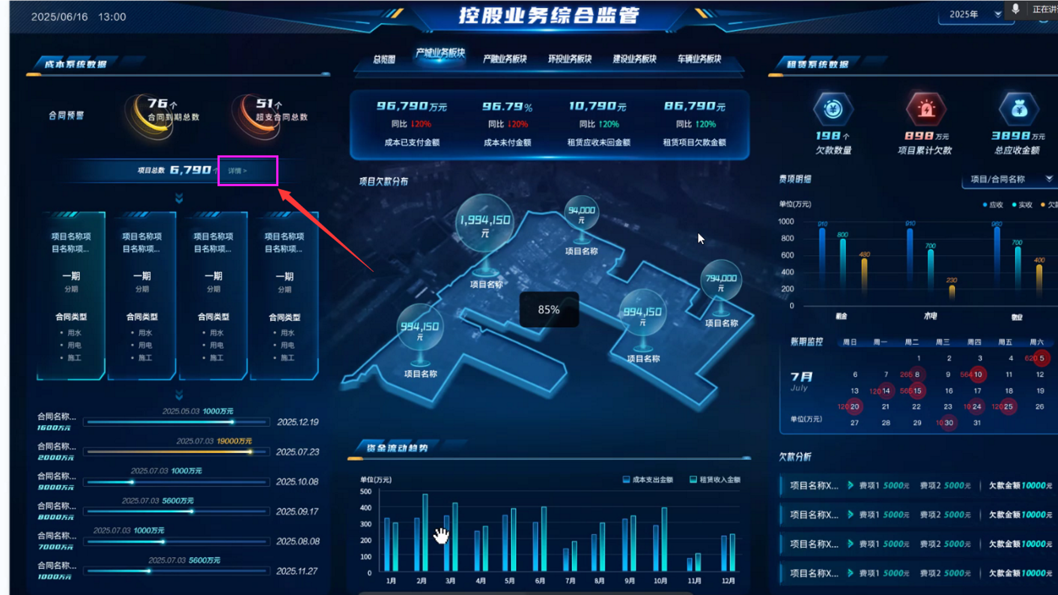 大屏设计器支持几十种图表样式,可自由拼接、组合,设计炫酷大屏