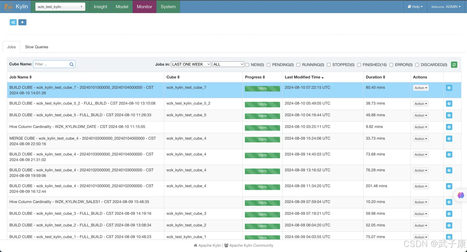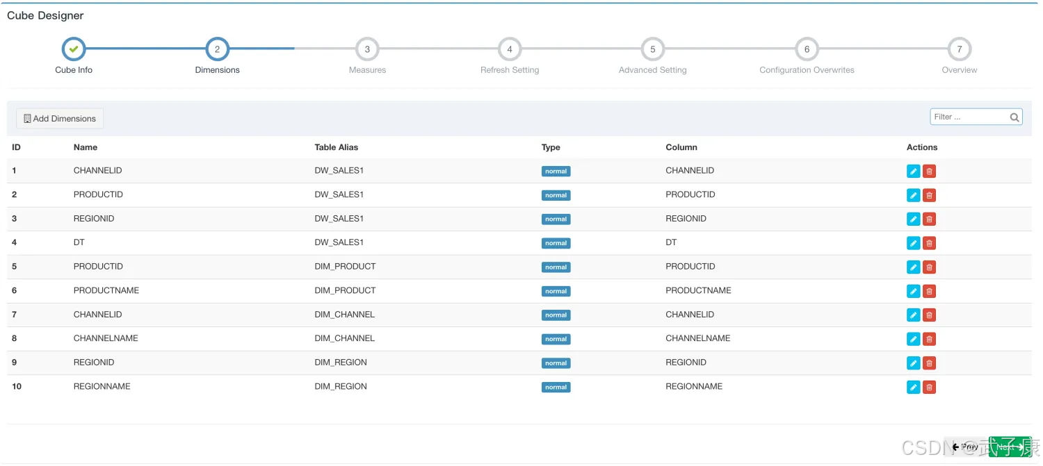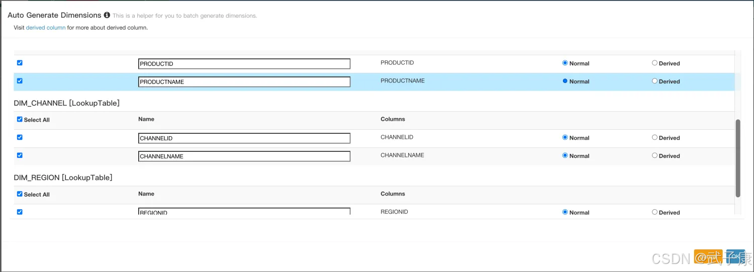 省略 Model 等操作。构建前面 Cube4 类似的 Cube7,仅在维度定义有区别。(我这里是 Clone Cube4,然后修改的)wzk_test_kylin_cube_7 的字段中,都是 Normal: