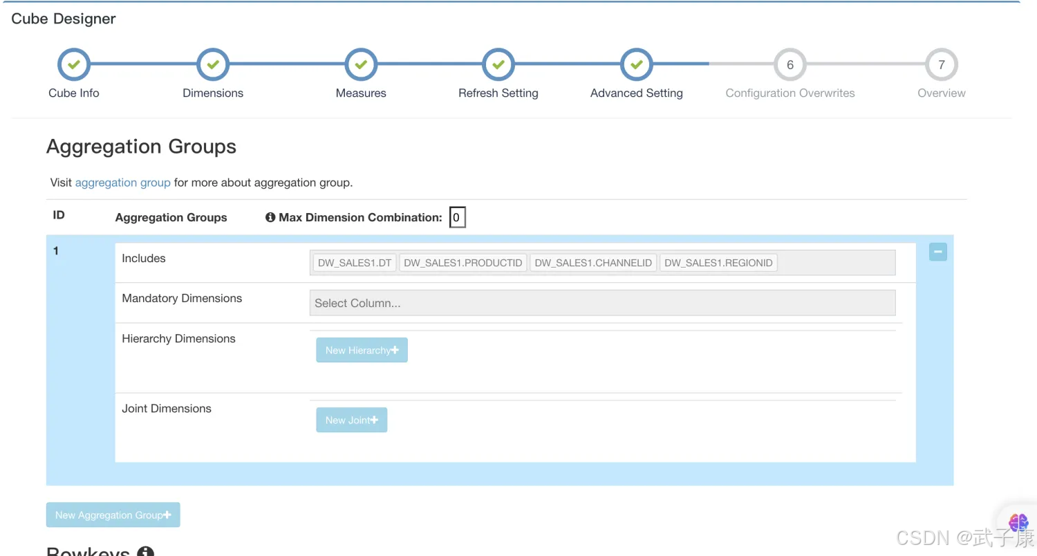 随着维度数目的增加,Cuboid 的数量会爆炸式的增长,为了缓解 Cube 的构建压力,Apache Kylin 引入了一系列高级的设置,帮助用户筛选出真正需要的 Cuboid(本质是要减少 Cube 构建过程中的预计算),这些高级设置包括: