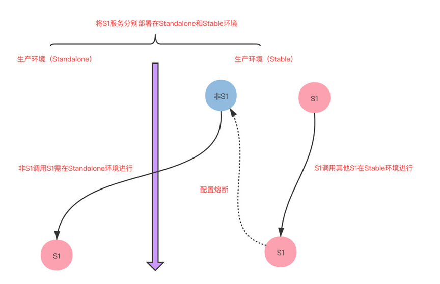 非核心服务调用 S1 服务流量路由到 Standalone 环境