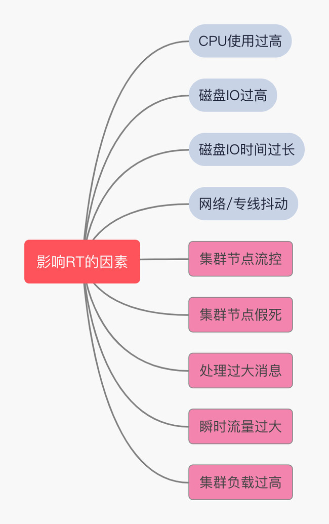 如果说这些关键指标中哪一个最重要?我会选择集群中每个节点的心跳检测,即:响应时间( RT ),下面看看影响 RT 可能哪些原因。