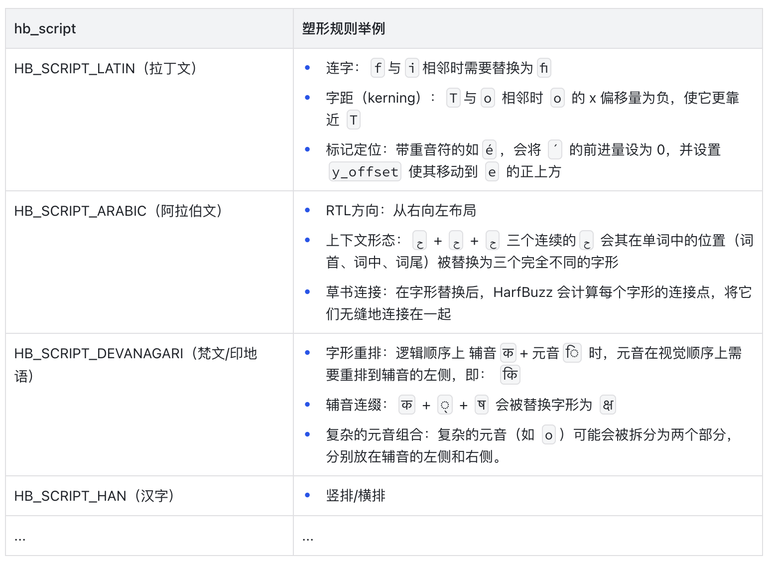 HarfBuzz 内部会根据 script 选取不同的 shaping 规则。