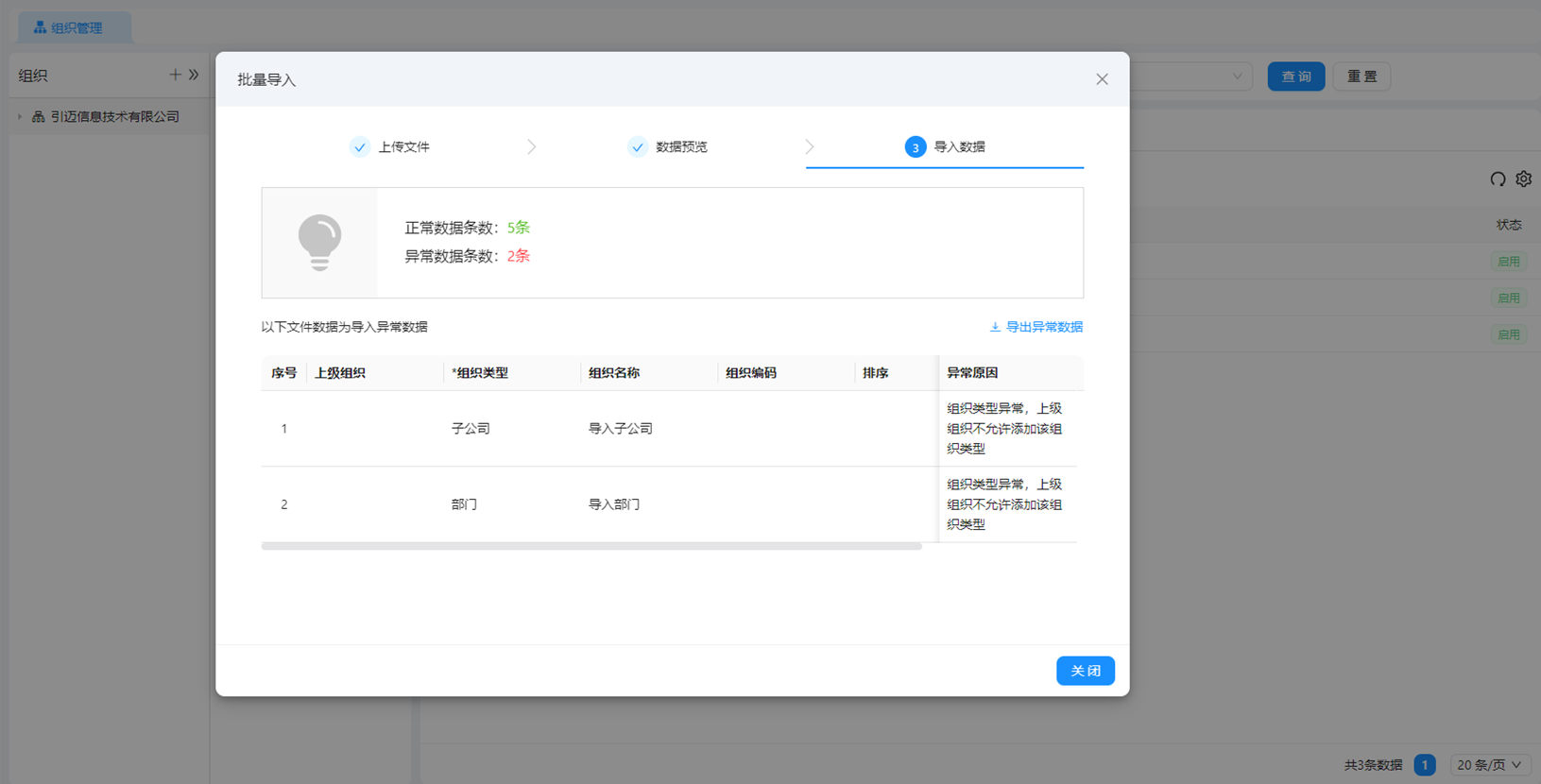 组织类型挂靠异常,导入提示“组织类型异常,上级组织不允许添加该组织类型”