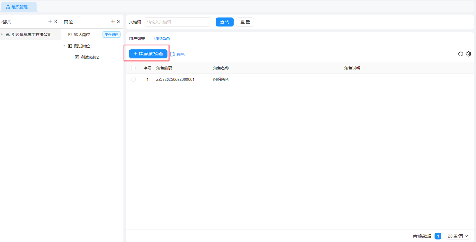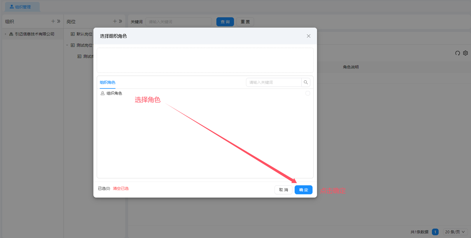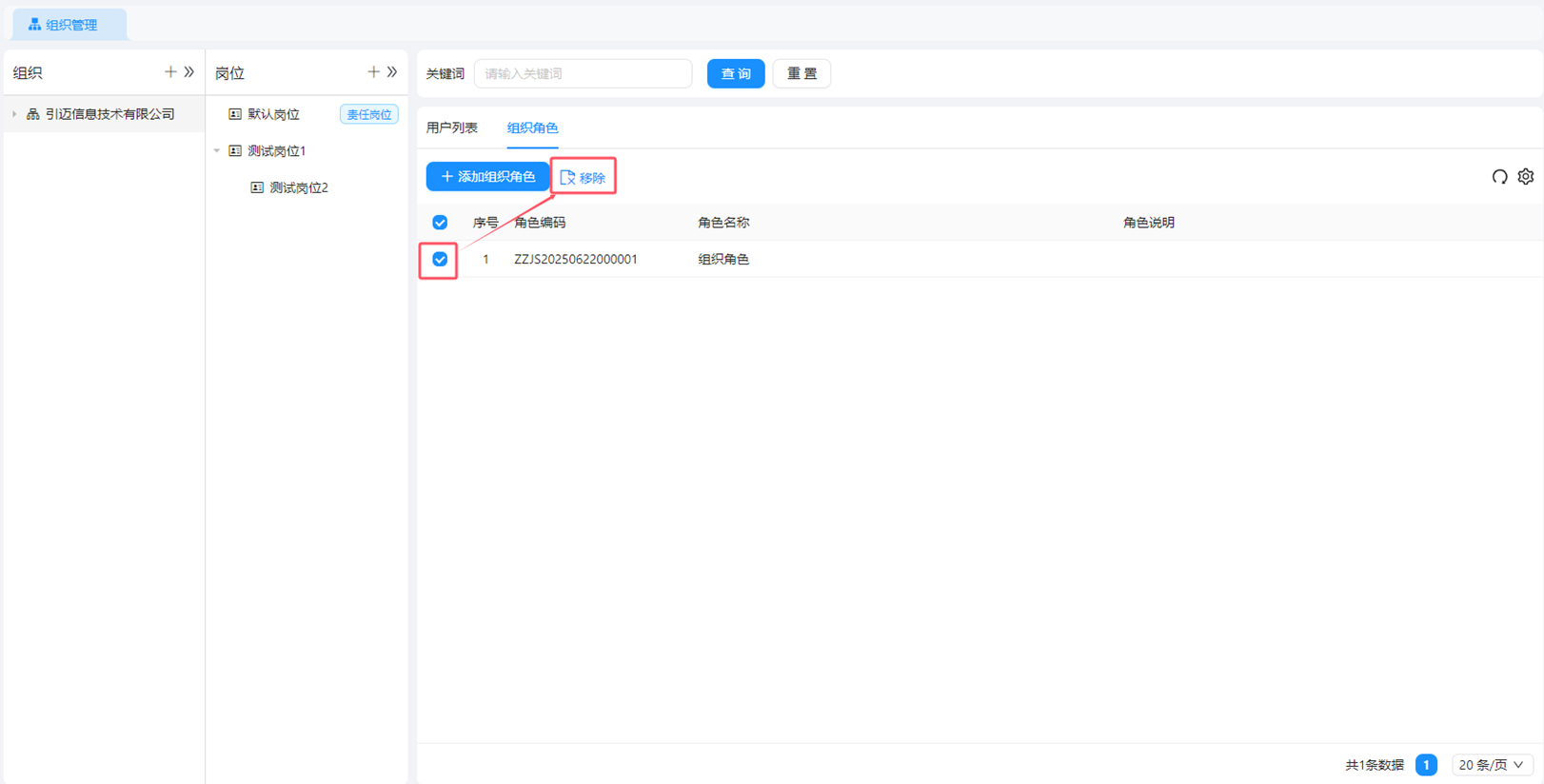 点击组织,右侧切换组织角色列表,可添加和移除组织角色