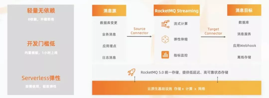 消息基础架构的能力提升之外,阿里云 RocketMQ 在 Streaming 流式处理场景推出了轻量级消息 ETL 功能。