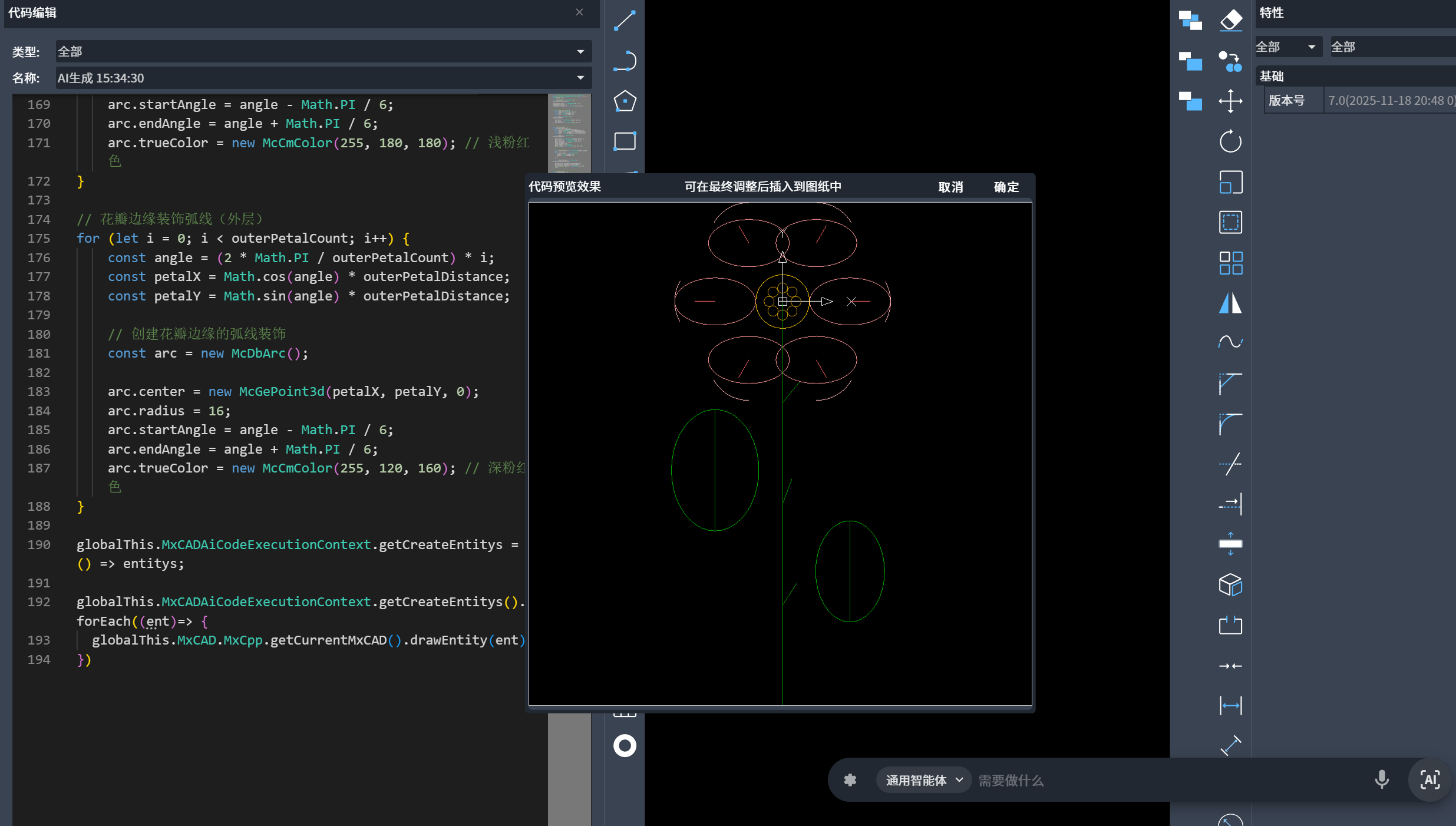 AI 可以像人类工程师一样思考,理解每个几何元素的含义-可以精确控制颜色、图层、线型等所有属性-能处理复杂的空间变换和几何计算-生成的代码质量更高,更符合工程规范
