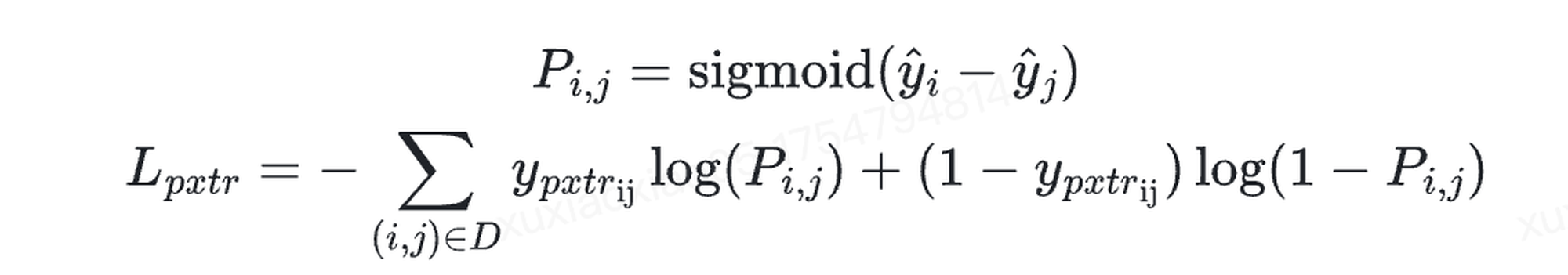其中 是模型预估分。所有 Pxtrs 的整体 loss 为: