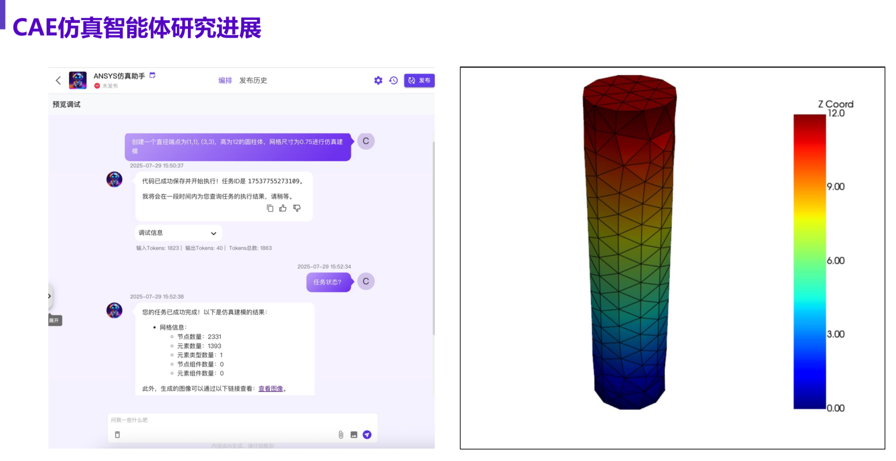 CAE 仿真智能体:破解前处理 “效率陷阱”针对 CAE 仿真的核心痛点,该智能体通过 “经验库 + 自动化操作” 实现突破:一方面,将仿真专家的模型清理经验(如面片冗余、缝隙处理方法)数字化存入经验库;另一方面,可在 GPU 服务器上自动启动 ANSYS,完成几何简化、网格划分等操作,仅需人工核验最终结果。实施后,仿真效率有效提升,精度一致性显著提高,且支持竞品仿真分析等扩展场景。