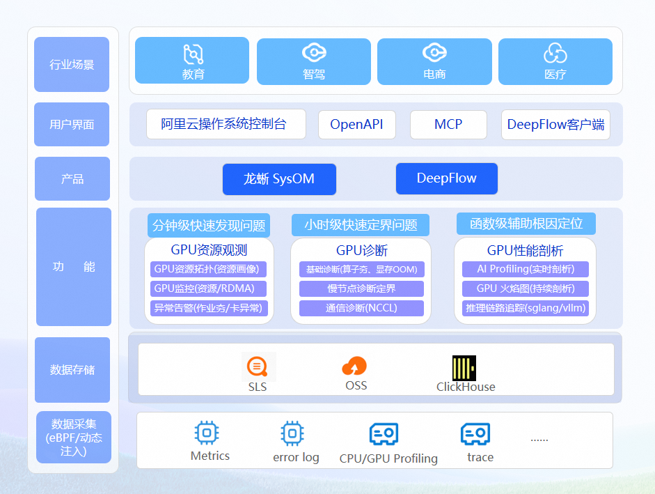 系统运维联盟则通过整合各厂商资源优势,积极开展运维产业的技术合作交流,促进操作系统及运维、可观测领域的产学研结合、技术创新和科技成果转化落地。在应对 AI 基础设施在异构环境下的可观测性挑战中,阿里云、云杉世纪基于龙蜥社区运维联盟联合产出《AI 基础设施可观测解决方案》,该方案基于 eBPF 技术实现了 AI 全栈可观测方案,解决了异构场景的数据指标关联问题,支持全局维度的串联能力,定位 CPU 和 GPU 的性能等问题,适用于银行、电信、教育等业务场景的可观测,并在银行、电信等行业落地使用。