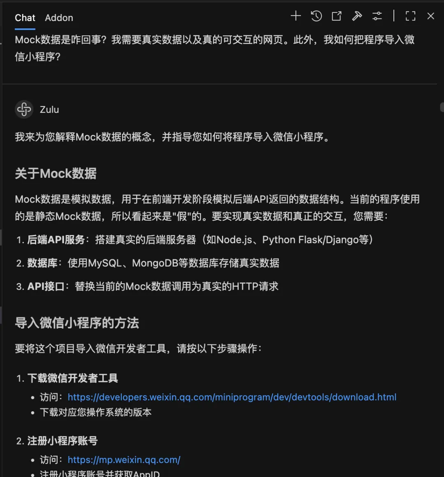 从创建项目配置文件,到搭建页面结构,再到实现交互逻辑,Zulu“大包大揽”,一个字母都不用你亲自输入。
