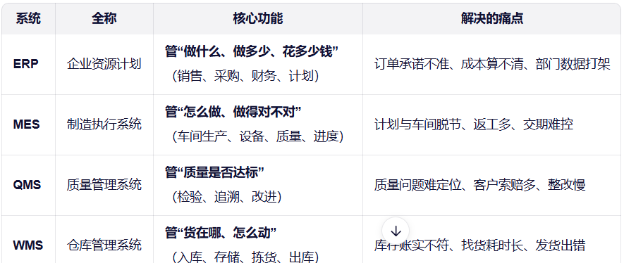 数字化转型避坑指南:ERP、MES、WMS、QMS 如何选?
