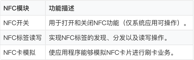 最后,不得不提的是 NFC 模块。近场通信(NFC)技术在近距离交互场景中发挥着重要作用,如一碰传、NFC 支付等。HarmonyOS NEXT 的 NFC 服务提供了 NFC 开关控制、NFC 标签读写、NFC 卡模拟等丰富功能。