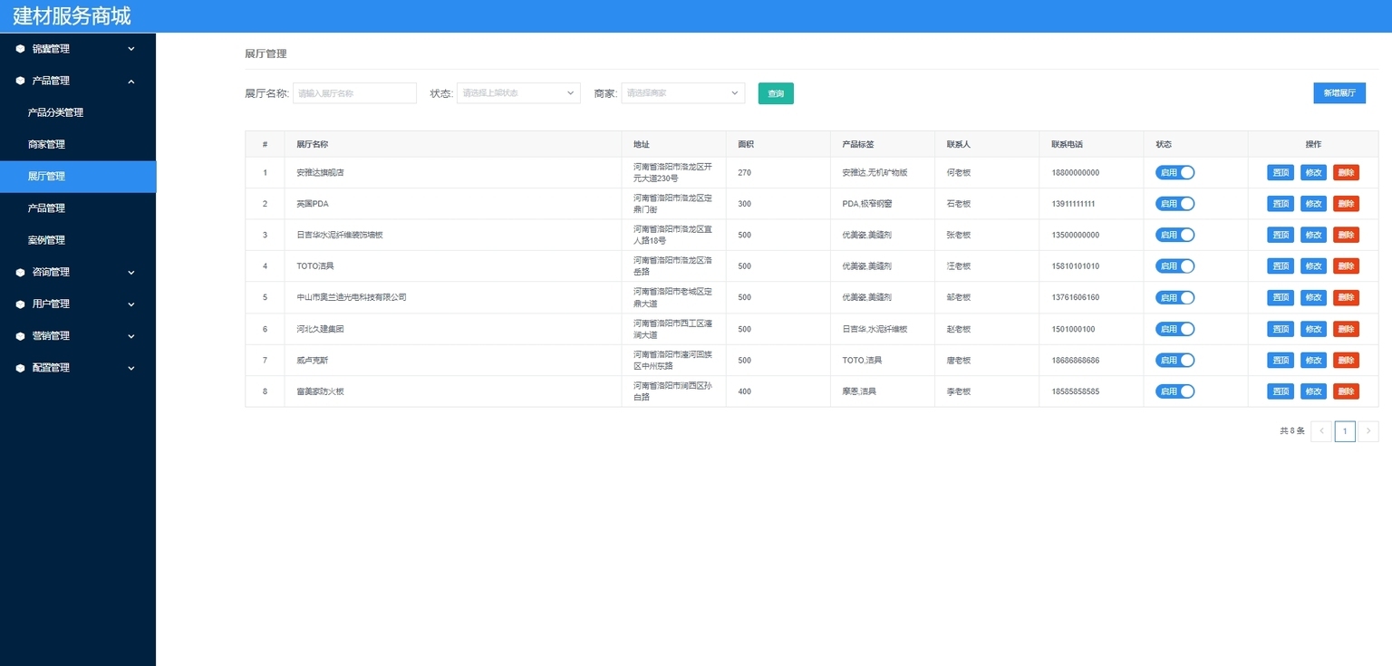 展厅管理:管理线上或线下的展厅信息,包括展品布置、展厅维护和参观管理,以提升品牌形象,为用户提供沉浸式的建材展示体验。