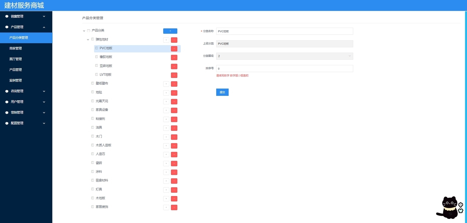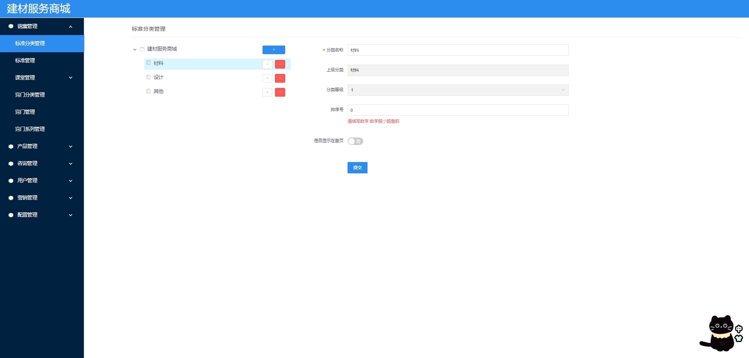 产品分类管理:对产品进行分类管理,便于用户检索和比较,提高产品的市场竞争力,优化建材产品的展示与选购逻辑。