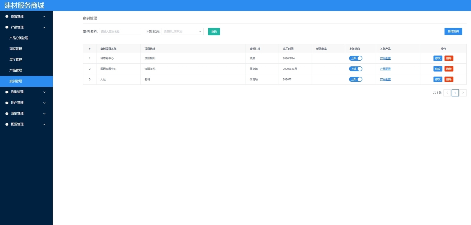 案例管理:收集和管理成功案例,用于展示产品或服务的实际效果,增强客户信任,为建材选购决策提供真实参考。