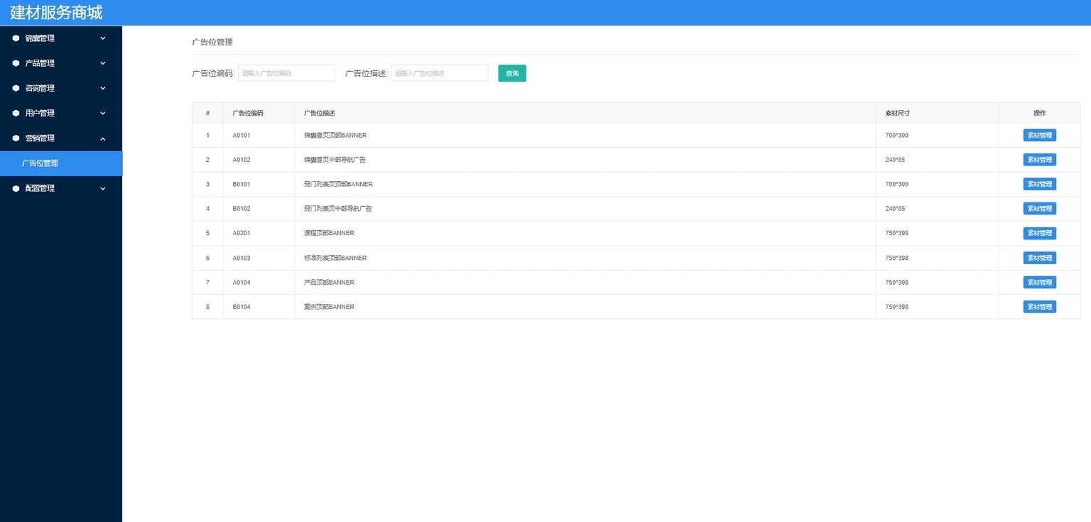 广告位管理:管理网站或应用中广告位的分配、定价和展示,以最大化广告收益,助力建材商家的营销推广与平台商业价值实现。