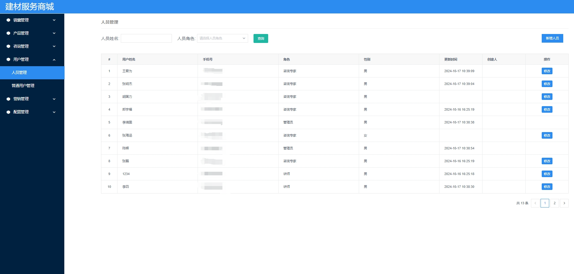 普通用户管理:管理非管理员用户的账户信息,包括注册、权限设置、状态监控等,以保障系统的安全和用户的良好体验,实现建材用户的精细化账户管理。