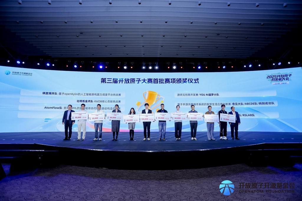 KWDB 核心贡献挑战赛一等奖获奖团队(右六)参与首批赛项颁奖仪式