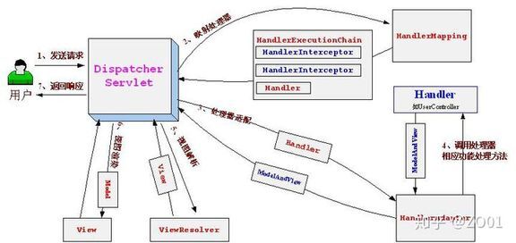 1). 用户发请求-->DispatcherServlet,前端控制器收到请求后自己不进行处理,而是委托给其他的解析器进行处理,作为统一访问点,进行全局的流程控制。