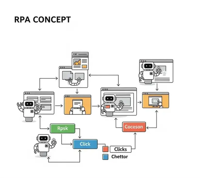 而 RPA(机器人流程自动化)正是这座桥。RPA 能模拟人工操作,与 ERP、CRM、财务系统等无缝衔接,自动完成大量重复性任务。