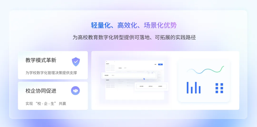 灯塔低代码开发平台以其轻量化、高效化、场景化优势,深度渗透高校教育全环节,通过推动数字化转型,培养复合型人才,驱动教育与产业协同发展。