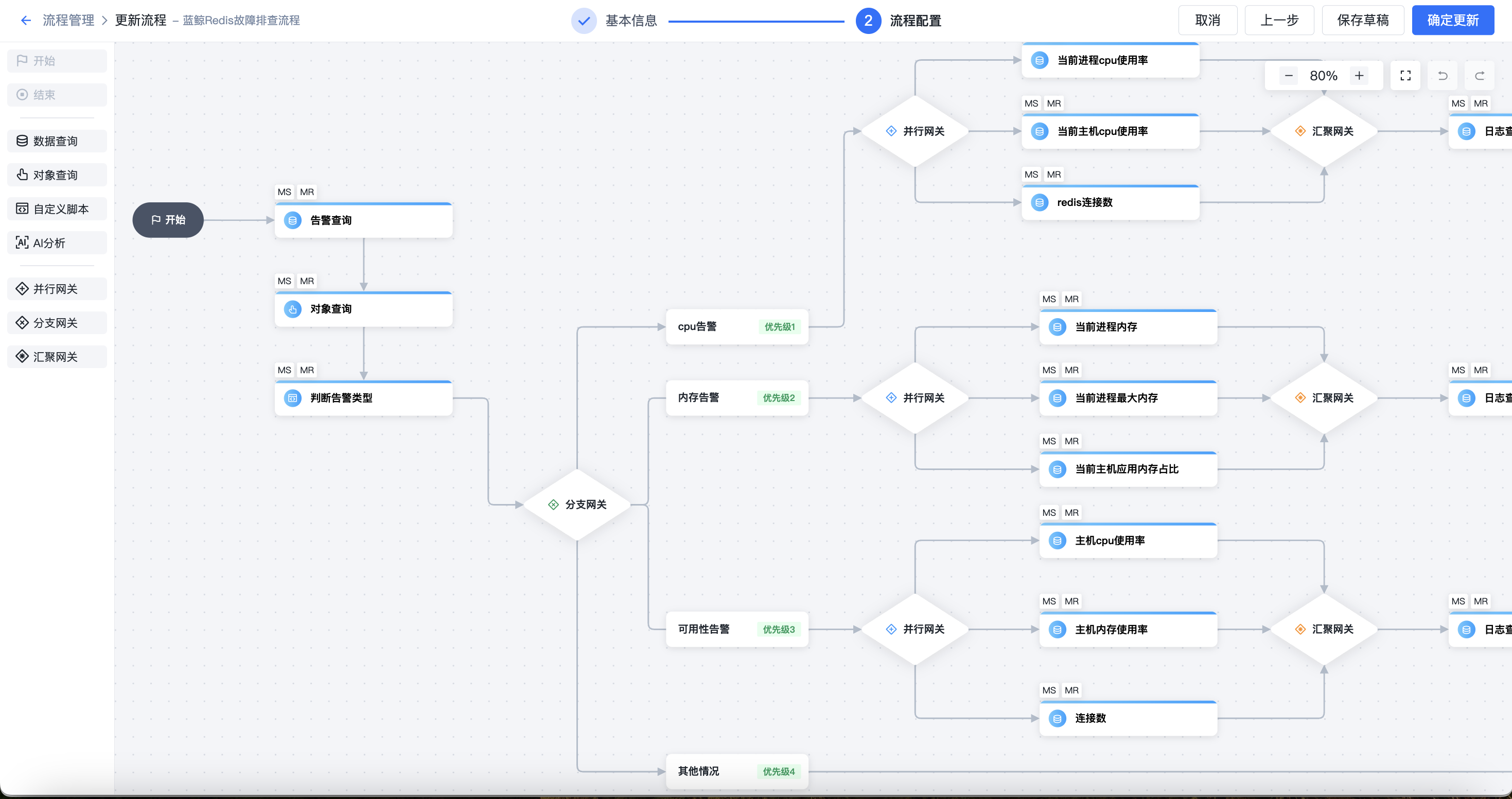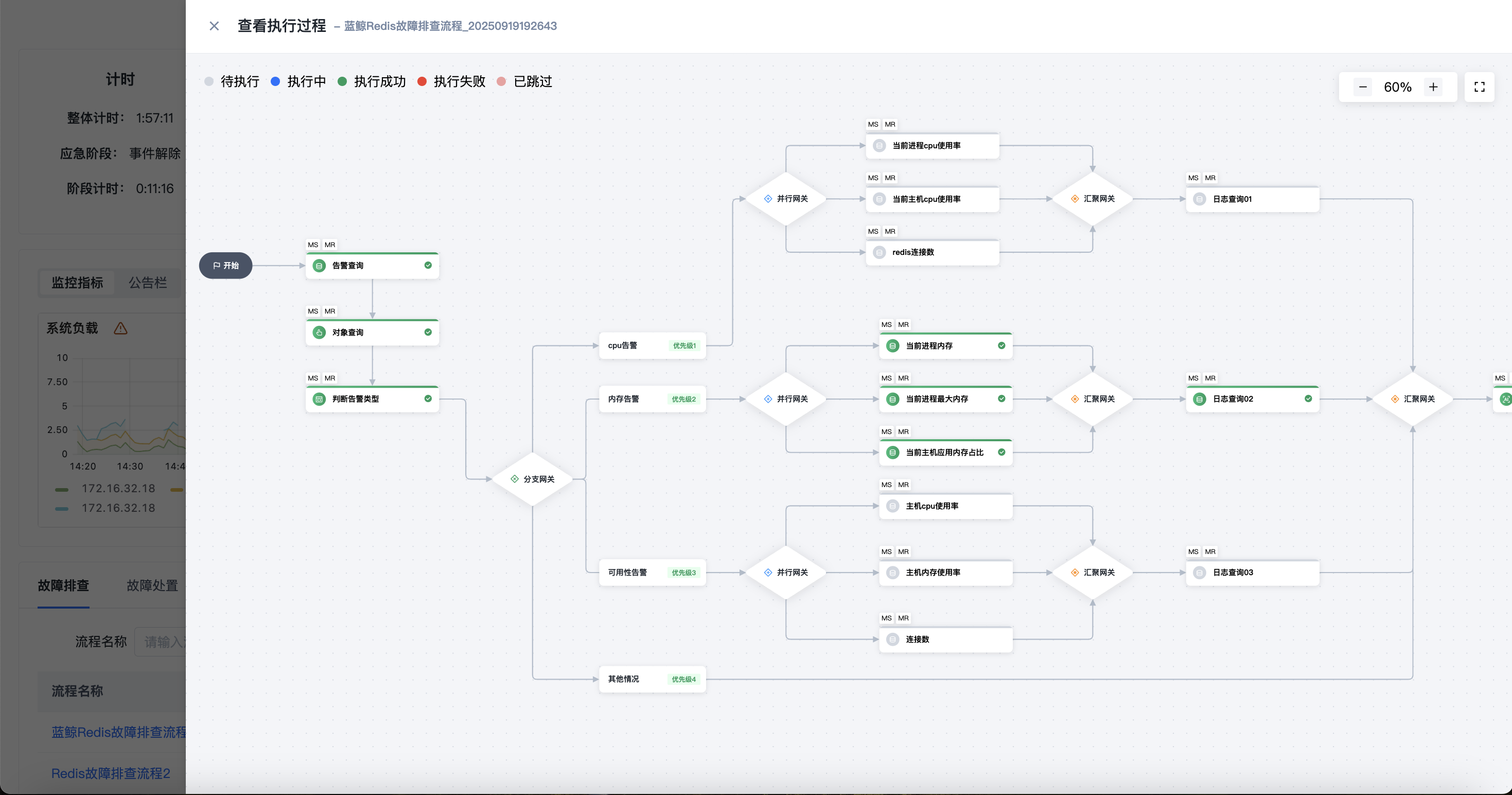 一键式故障智能排查定位:新增应急事中故障排查定位环节,用户可一键式执行故障排查定位流程,对当前故障事件进行排查定位。