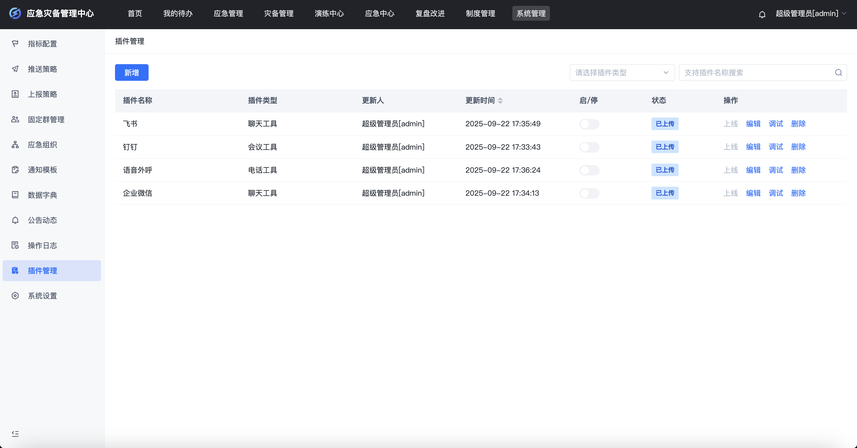 实现外部接口通过插件的方式进行统一接入与管理,便于同类型接口替换时只需上传对应插件包即可正常使用。比如 IM 工具的对接,对于不同的客户,聊天工具的选择分别对应企微、飞书或钉钉,那么用户只需要替换对应的插件包上传、调试成功后即可正常使用,大幅提升了产品的可扩展性,并实现快速交付。