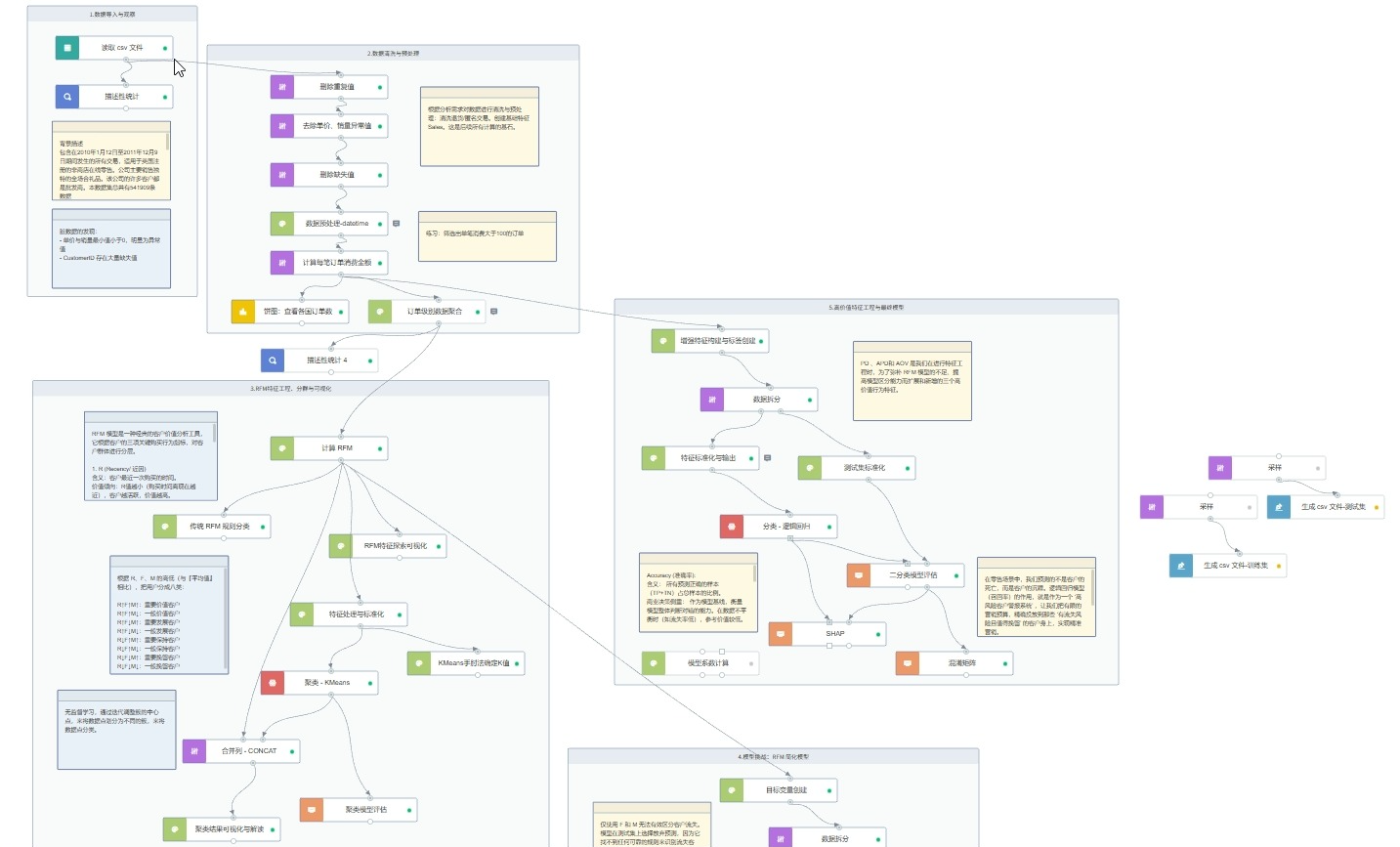 实践环节中,学员们通过同济经管学院与和鲸共建的综合实验平台,基于 Canvas 低代码拖拉拽开发工具,通过基于英国零售交易数据的案例,体验了从 RFM 分层到逻辑回归建模的全流程,并构建具备 70% 召回率的客户流失预警模型,深刻体会到特征工程在提升模型效果中的核心作用。实践课目标不是让学员“会编程”,而是理解:如何从数据中提炼业务洞察,并用模型预测客户行为,最终将 AI 输出转化为可执行的管理决策。