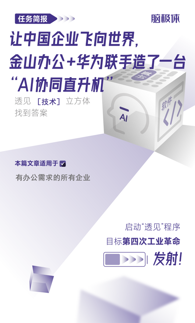 以 AI 协同为翼,搭乘金山办公+华为“AI 协同直升机”,企业可以踏上一条转型捷径,经由云端,飞抵未来,将成为中国企业穿越行业周期、赢得全球竞争的必由之路。