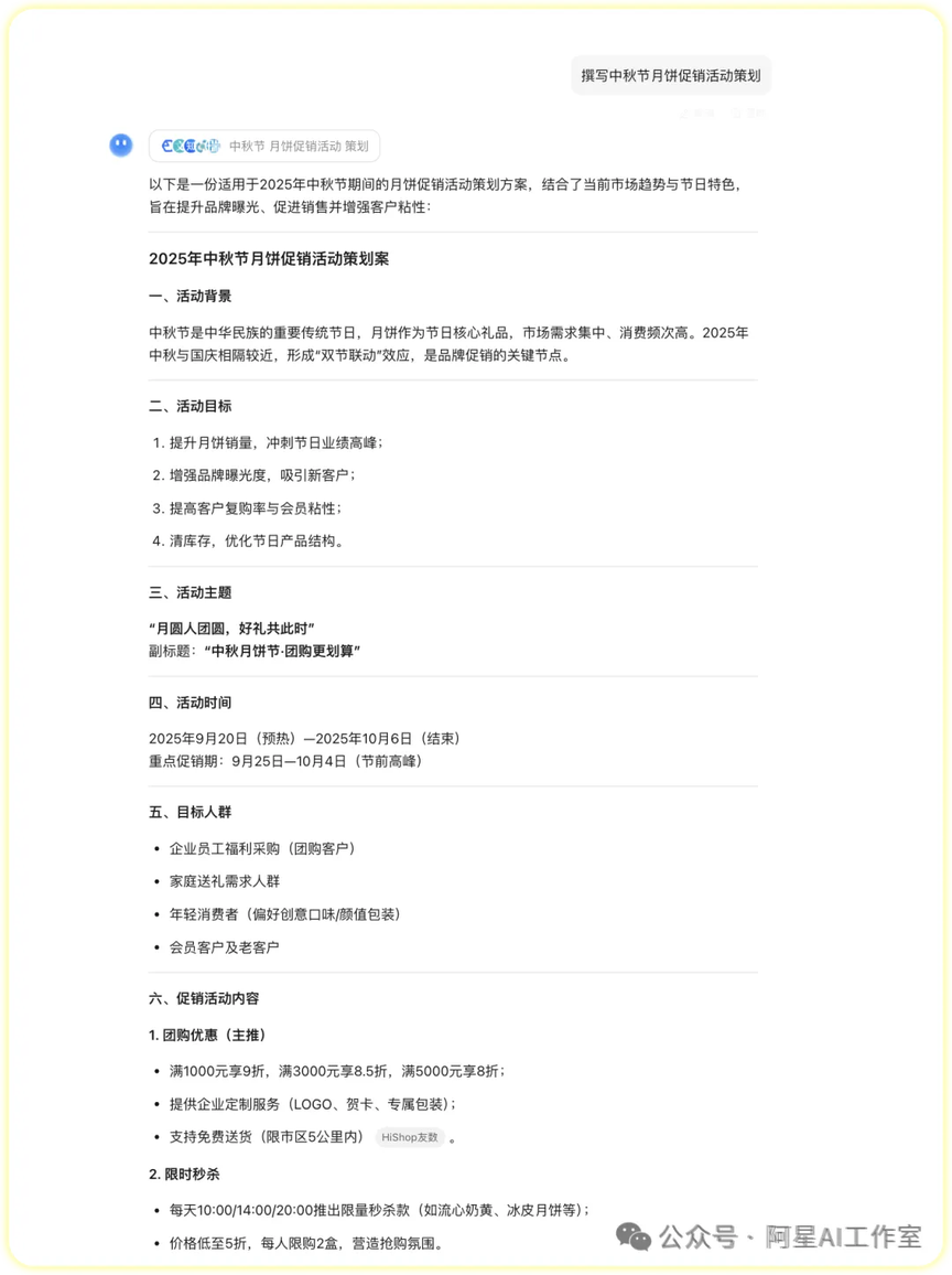 有时候阿星想让 AI 帮忙策划一下营销活动