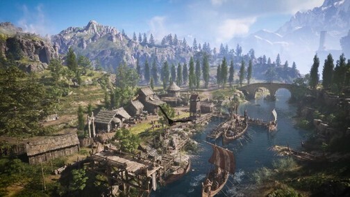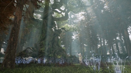 《伊米尔传奇》给人的第一印象,就是在当前主流 MMORPG 领域堪称第一梯队的画面表现。游戏采用虚幻 5 引擎开发,并引入 Nanite 虚拟化几何体技术与 Lumen 全动态全局光照系统,实现精细建模与实时光影效果。在技术层面之外,游戏在美术风格、镜头表现等方面也下了一番功夫,游戏采用电影化的镜头语言,人物的动作、表情、镜头的运用都十分接近 3A 大作的表现力,沉浸感十足的剧情表现力也避免了很多 MMORPG 剧情沦为鸡肋的问题。