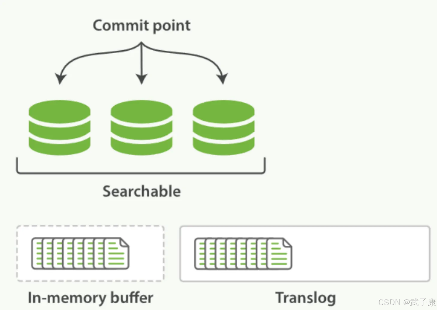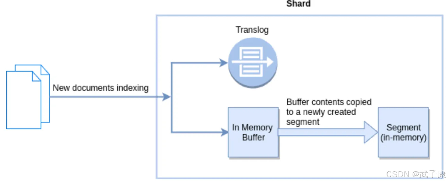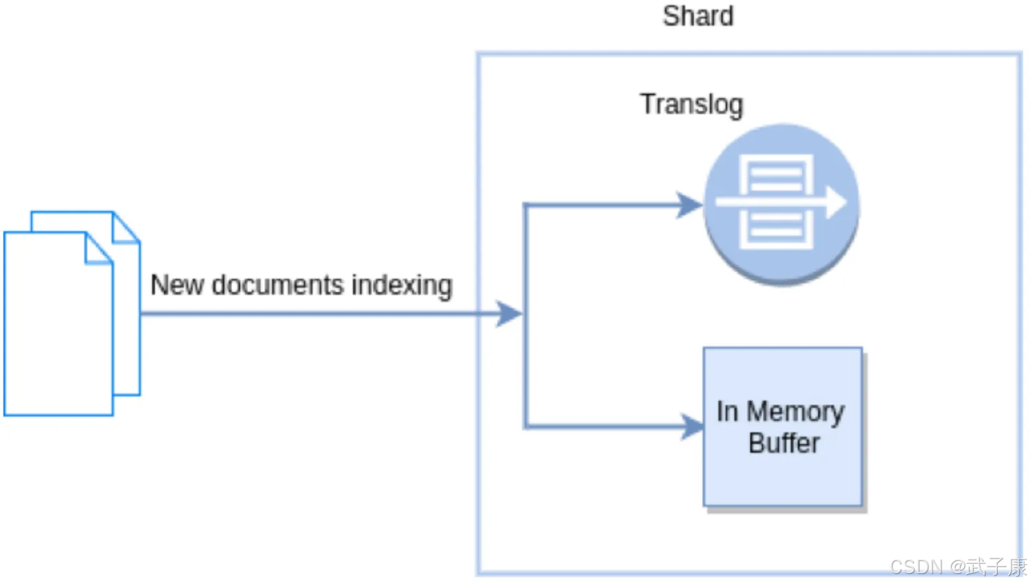 Write Ahead Log 预写入日志新文档被索引意味着文档会被首先写入内存 buffer 和 translog 文件,每个 shard 都对应一个 translog 文件