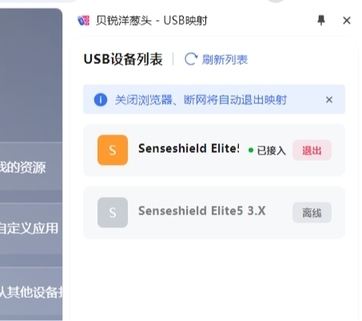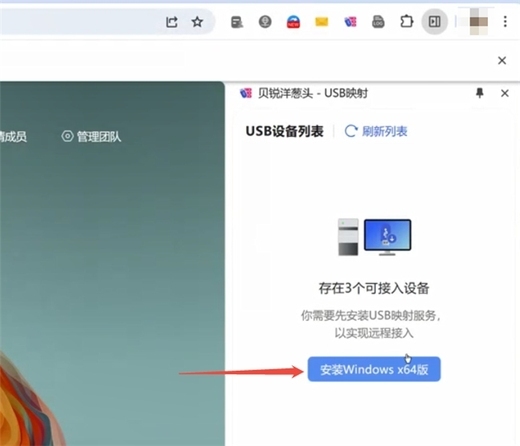 成员登录洋葱头后,在右上角的插件管理器中找到“USB 映射”插件,点击后选择安装一个本地的驱动程序,安装成功后刷新插件,即可查看被授权的加密锁。选择具体的锁,点击“接入”即可。插件显示“已接入”表示已成功远程映射接入。