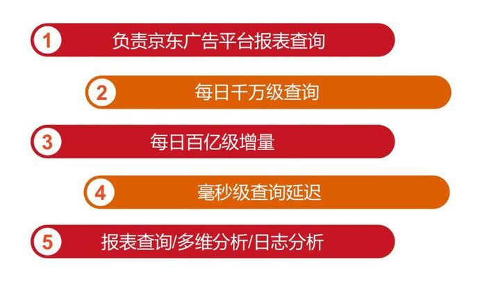 航源主要负责京东的广告平台报表业务,京东的广告平台每天支撑了千万级以上的查询量,同时每天有百亿级的增量需要维护。所有的报表级查询需要毫秒级返回数据,场景主要包括报表查询、多维分析、日志分析等。