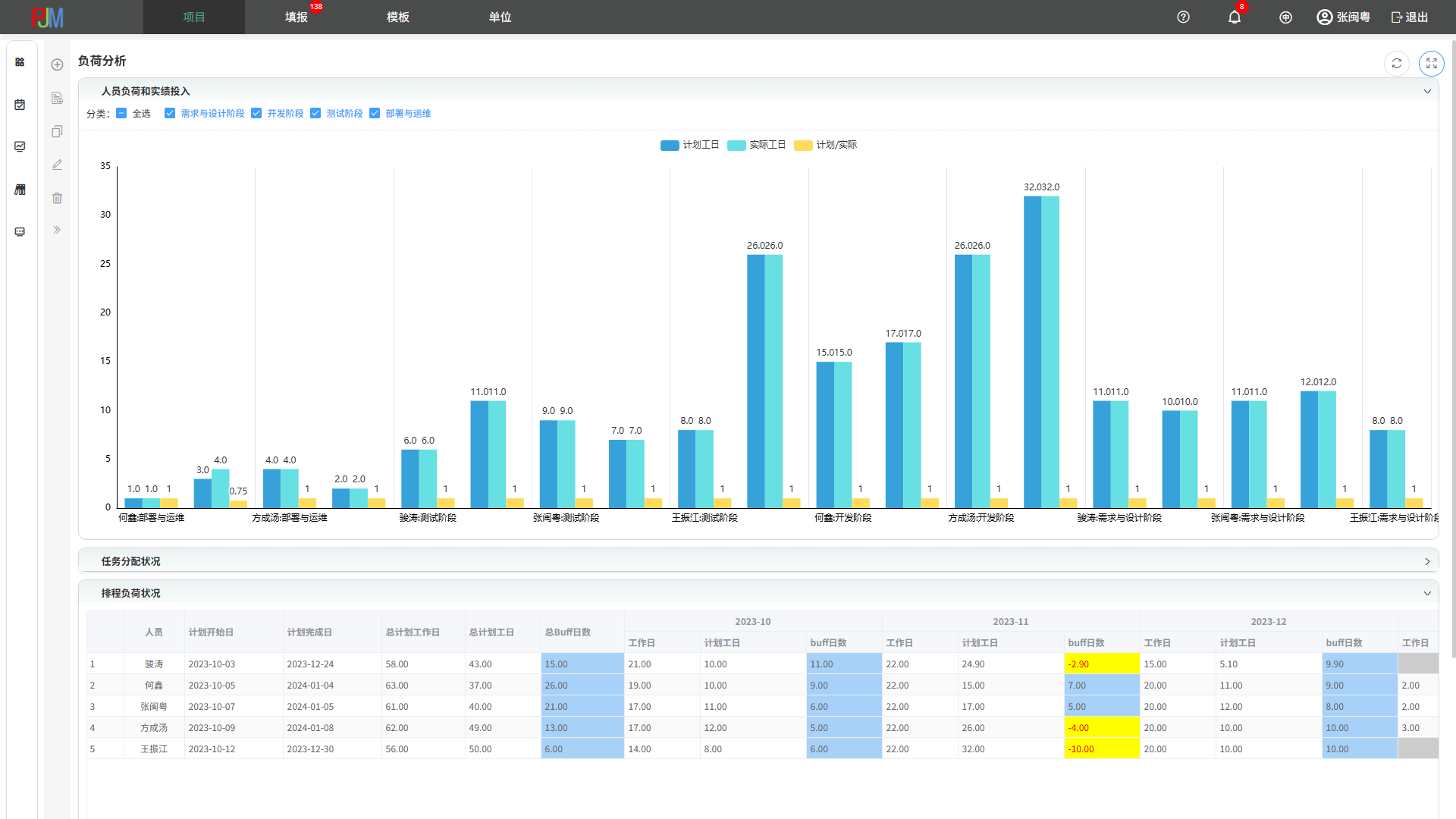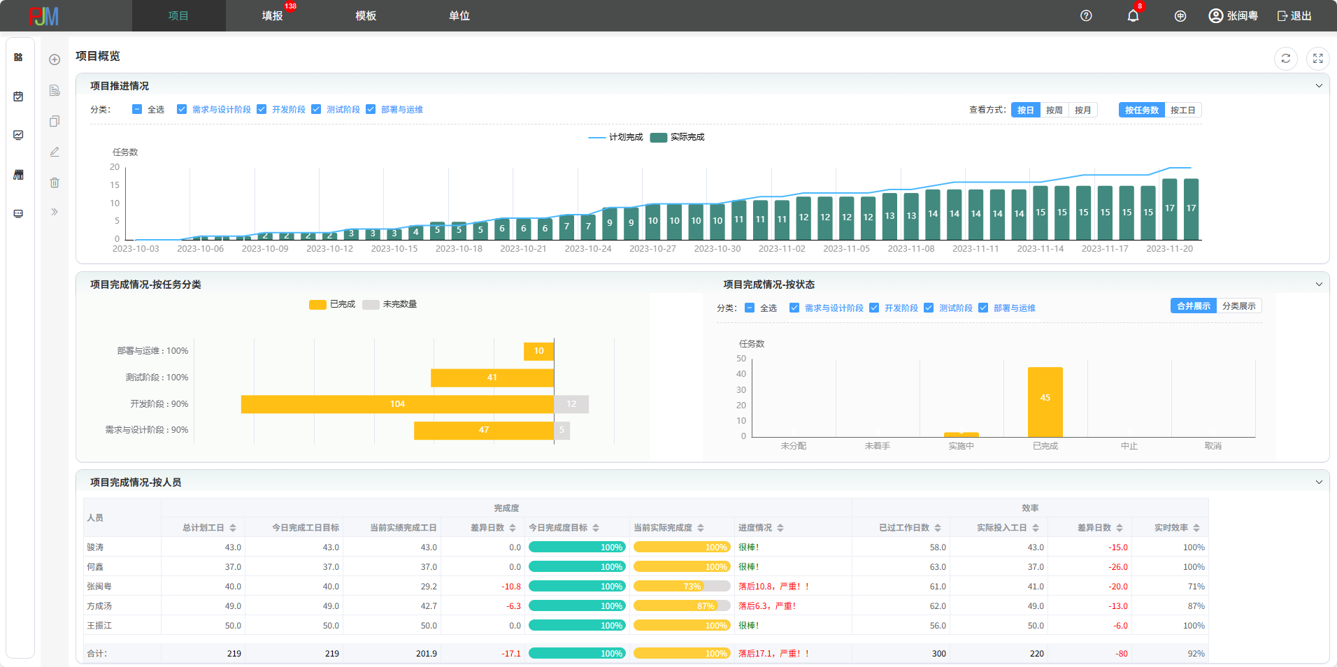 任务拆解(WBS): 将开发任务按敏捷原则拆解为 0.5-2 天的细粒度任务,并在 PJMan 中分配给对应负责人。任务进度条让每个人完成了多少、还剩多少一目了然。